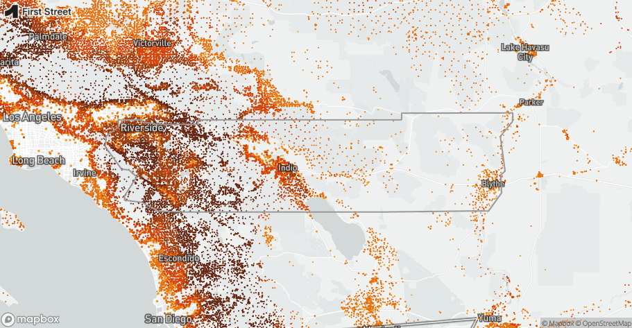 While exact totals vary by model and threshold, community-scale assessments indicate well over 700,000 homes face some level of wildfire exposure, and critical community facilities—schools, health care, utilities, and public safety sites—also carry measurable risk. First Street’s national risk work further notes that Riverside County has an annualized expectation of ~1,600 structures destroyed in the current climate, underscoring the scale of potential impacts countywide.